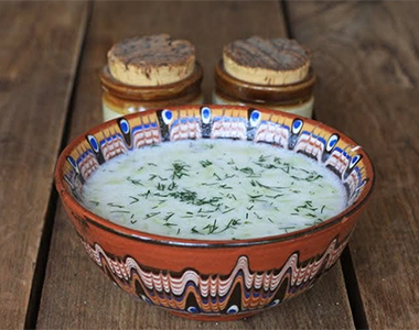 ヨーグルトの冷製スープ。ブルガリアの夏を代表する一品です。軽いランチや、暑い日のさっぱりした一皿として親しまれています。お店によってはボウルだけでなくグラス感覚で出されることもあり、「飲むスープ」に近い扱いになることもあります。