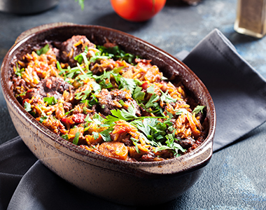 「ユヴェチ」は、ギリシャの家庭で日曜日の午後にゆっくりと味わう、団らんの象徴のような料理です。牛肉をトマトや赤ワインとともにじっくりと煮込み、米粒の形をしたパスタ「オルゾ(クリサラキ)」を合わせて仕上げます。肉の旨みを一粒一粒に閉じ込めたパスタは、驚くほど滋味深く、心まで温まるような優しさ。長い時間をかけて素材の味を引き出す、ギリシャ流「スローフード」の精神を体現した、どこか懐かしい味わいをお楽しみください。