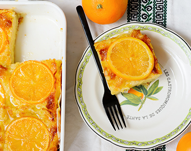 「ポルトカリ(オレンジ)」の香りが贅沢に広がるこのケーキは、ギリシャのティータイムに欠かせない逸品です。最大の特徴は、小麦粉ではなく乾燥させた薄いパイ生地(フィロ)を砕いて使用する独特の製法。これにより、シロップをたっぷり吸い込みながらも、しっとりとした独特の質感が生まれます。これは、ギリシャの街のケーキ屋さんが、余ったフィロを無駄にしないよう工夫して作っていたという昔ながらの知恵から生まれたものです。シロップをたっぷり吸い込みながらも、しっとりとした独特の質感が生まれるこのケーキは、地中海の太陽を浴びて育ったオレンジの華やかさと共に、食事の時間を幸福な余韻で締めくくります。