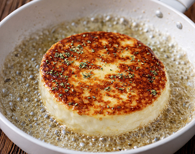 「サガナキ」とは、ギリシャで使われる小さな両手鍋のこと。この料理は、羊や山羊のミルクから作られる硬質チーズをこんがりと焼き上げます。世界最古の養蜂の歴史を持つギリシャにおいて、はちみつは「神々の食べ物」として愛されてきました。香ばしく焼けたチーズの塩気に特製ハニーシロップで仕上げる方法を行います。