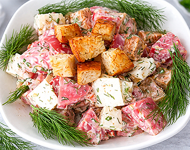 クリーミーでありながら、驚くほどさっぱりとした後味が特徴のソースです。ウズベキスタンでは、夏のサラダの定番調味料として親しまれている「スマック」を使用します。