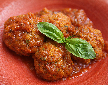 このポルペッテのレシピは、古くから家に伝わる家族の味で、私自身これ以上おいしいポルペッテをまだ食べたことがありません。フレッシュハーブや羊の父から使られるペコリーノチーズとパルミジャーノを使うことで、とても風味豊かに仕上がります。さらに、揚げるのではなく、コクのあるトマトソースで煮て作るため、やわらかくふんわりとした食感になります。イタリアでは、ポルペッテはアメリカのようにスパゲッティにのせるのではなく、メイン料理として食べられています。