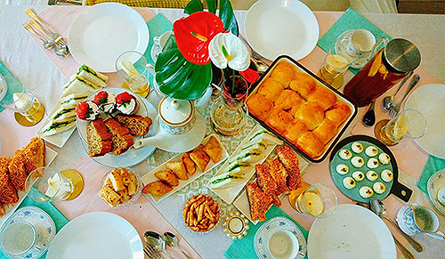 イギリスのアフタヌーンティは、ランチと夜遅いディナーの間に食べることから、甘くないおかず系のフィンガーフードが並びます。インドのアフタヌーンティは、インドを代表するスナックを集めて美しく並べましょう。どこかイギリス風で、やっぱりインドなセイボリーを7種と、チャツネを2種。チャツネはソースとしてアクセントになります。普段のお料理にも役に立つことでしょう。