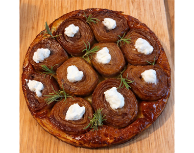 自家製のショートクラスト生地に、甘酸っぱいオニオンを載せて。クリーミーなチーズとフレッシュハーブが、甘みと爽やかさの完璧なコントラストを演出します。