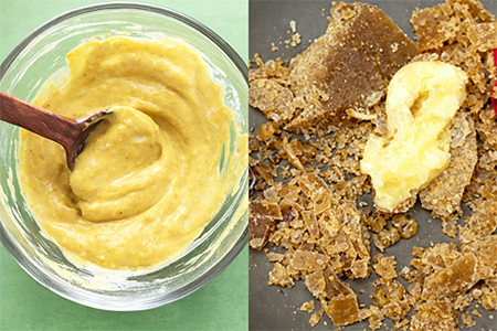 アーユルベーダでは最良の油という位置づけのギー(すましバター)。そして最良の糖分とされているのがサトウキビの絞汁から作るジャグリー。どちらも身体の浄化効果があるとされ、1日大さじ1杯とることで体内バランスを整えるといわれています。ただしどちらもとりすぎには気をつけて。適正な量をとることもアーユルベーダを実践するうえでは大切なことです。