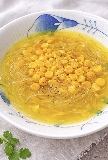 ミャンマーの食卓において、日本の「お味噌汁」のような存在として欠かせないのがこのスープです。。ひよこ豆の自然な甘みと、とろけるような優しい口当たりが特徴です。栄養満点でヘルシーなだけでなく、油戻しカレー(スィーピャン)の付け合わせとしてご飯にかけると、より一層美味しくいただけます。