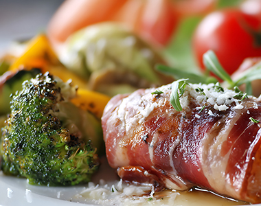 ◉ブロッコリーの生ハム巻き サフランヨーグルトディップ