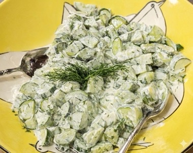 シャキシャキのきゅうりをハーブとガーリックの効いたクリーミーなドレッシングでいただきます。