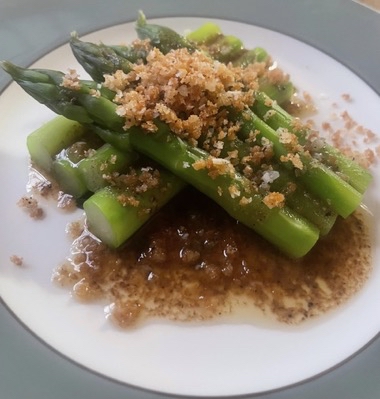 ピエモンテを象徴するソース「バーニャカウダ」。そのルーツは中世プロヴァンスに遡り、かつてはサヴォイアの侯爵夫人がとても気に入られ、トリノの王室の食卓をも彩ったと伝えられています。 今回は伝統をベースに、ブラウンバターの香ばしさを纏わせた珠玉のレシピで。赤ワインビネガーとレモンの酸味が、濃厚なソースに軽やかな気品を添えます。旬のアスパラガスに、炒ったパン粉とパルメジャーノの食感を添えて。