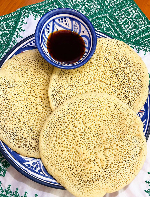 モロッコで朝食やティータイムに親しまれている、“千の穴のパンケーキ”とも呼ばれる、モロッコで親しまれているやわらかなパンケーキ。表面に無数の小さな穴がポツポツと空きます。この穴が、後からかけるハチミツやバターをスポンジのように吸い込み、「しみジュワ」な食感を生み出します。作った発酵バターと一緒にどうぞ召し上がれ。