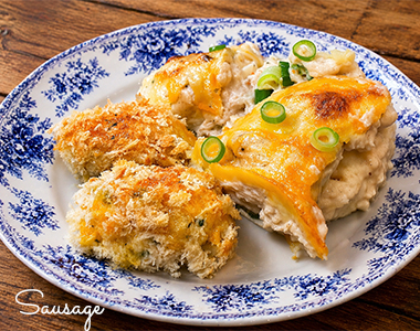 なめらかなマッシュポテトで固ゆで卵を包み込み、自家製のホワイトソースをたっぷりとかけて焼き上げた料理。イギリスの食卓に欠かせないジャガイモを使った、満足感たっぷりの一皿です。