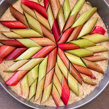 カスピ海を渡り、さらに東の山々に囲まれた国、キルギス。 ここから届いた初夏の絶品スイーツが、この「ルバーブ・ケーキ」です。一番の魅力は、思わず見惚れてしまうほど美しい幾何学的なデザイン。 真っ赤なルバーブを万華鏡のように並べたこのスタイルは、中央アジアの豊かな装飾文化を彷彿とさせます。