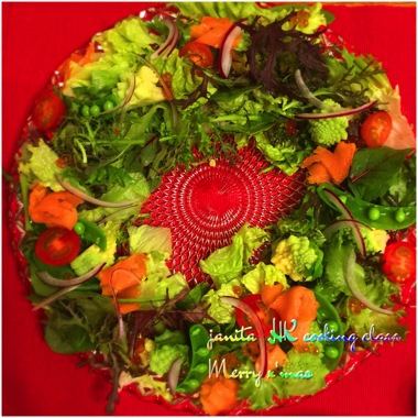 当日手に入る新鮮なサラダ菜や温野菜を使っておしゃれなサラダを作りましょう。 材料はいつもとそれほど変わらなくても盛り付けの仕方で全然違った印象になります。 クリスマスらしくリースの形に仕上げましょう。 以前勤めていたオーガニックレストランの定番ドレッシングのレシピもご紹介します。
