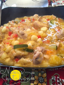 エキゾチックな名前を持つこのチキンシチューは南米らしいコクのある豊かな風味の一皿です。 チョクロと呼ばれるモチモチっとした白いトウモロコシに鶏肉と野菜の旨みたっぷり仕上がりの色合いも綺麗です。 このお料理は日本にはないお料理です。けれど日本の方の好きな味のようで、みなさんに喜んでいただけると思います。