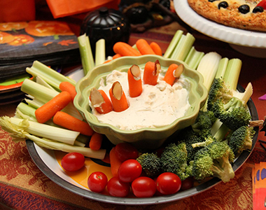 ポテトチップにお手製のディップを添えてハロウィンスタイルで