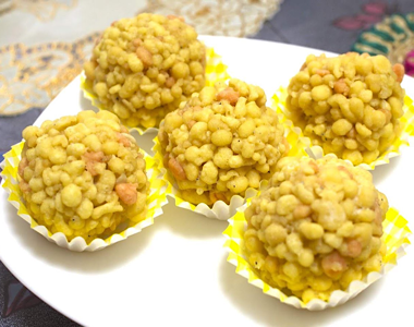 ブーンディラドゥは、揚げた小さな玉状のパン(ブーンディ)をシロップでコーティングし、一つにまとめたインドの伝統的なスイーツです。甘さとふんわりとした食感が楽しめます。